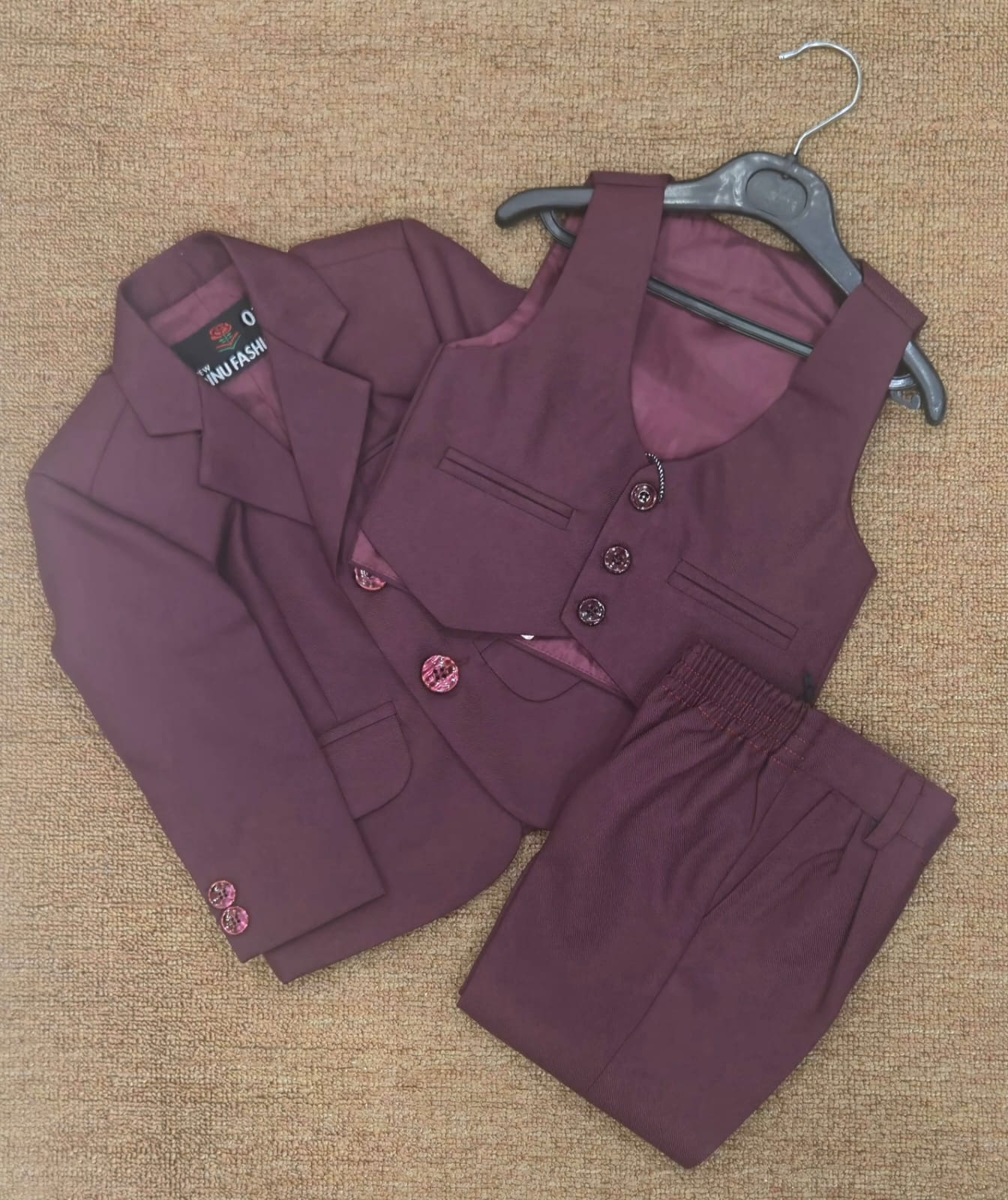 Premium Boys’ Maroon 3-Piece Party Blazer Set