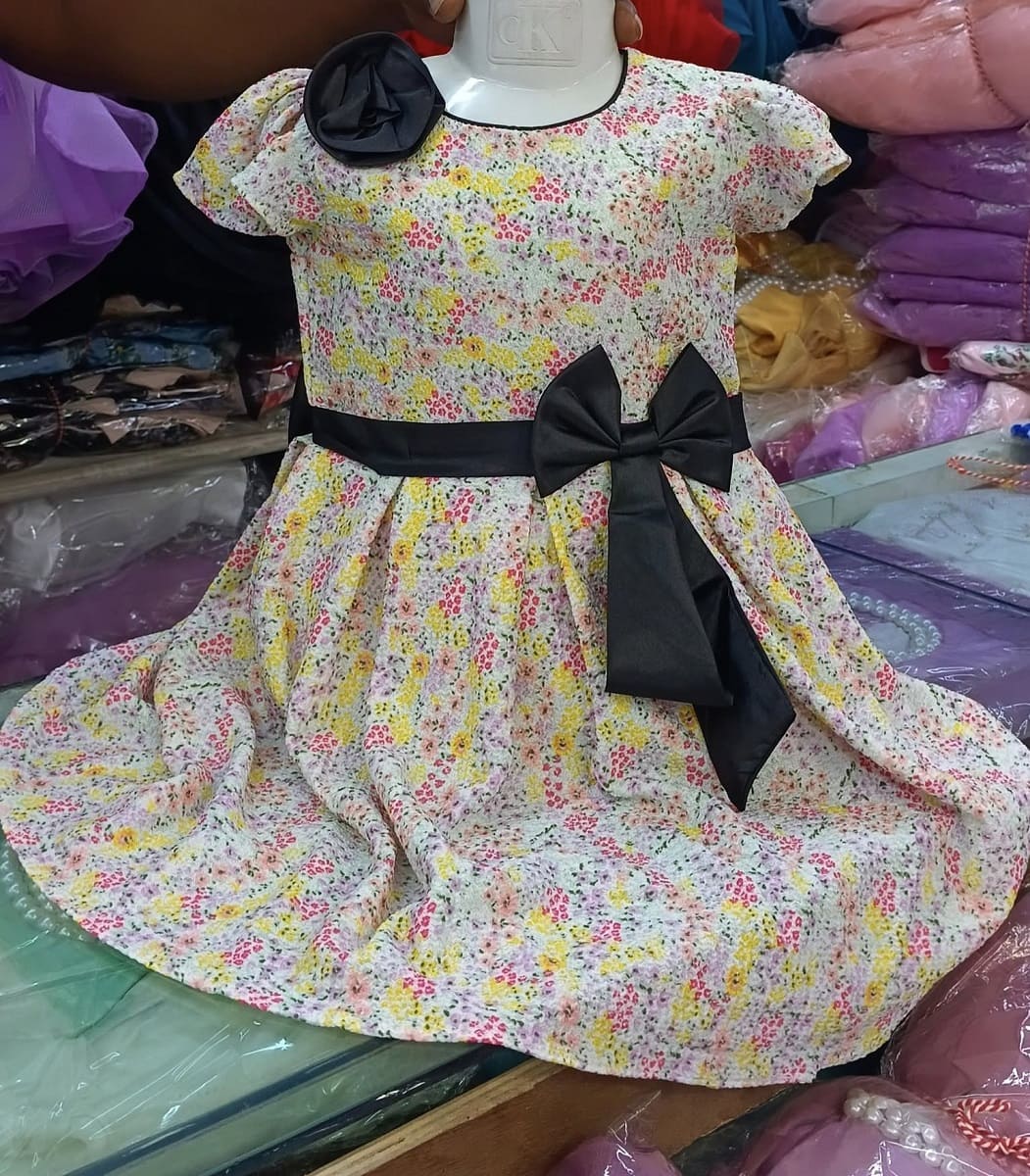 Baby Girl Party Dress Colorful Floral Print Frock with Black Bow