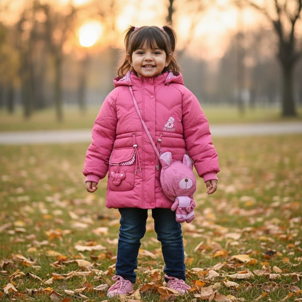 Girls’ Pink Hello Kitty Puffer Jacket with Hood and Bag