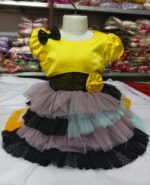 ডিজাইন: সিকুইন বো ডিজাইন এবং মাল্টিকালার টিয়ারড স্কার্ট।