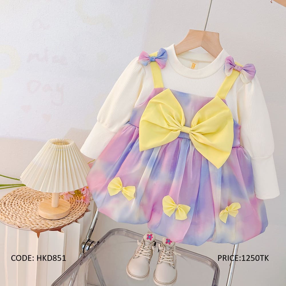 Vibrant Tie-Dye Baby Dress Set with Big Yellow Bow